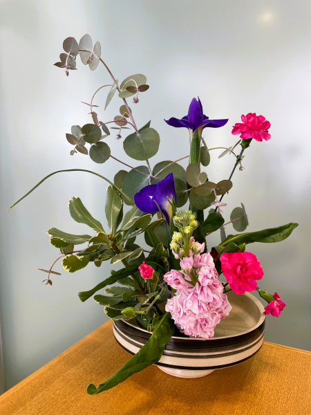 <ユーカリ・アイリス・ストック・カーネーション>