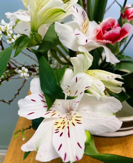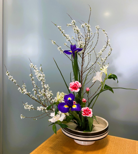 <ゆきやなぎ・アイリス・スプレーカーネーション>